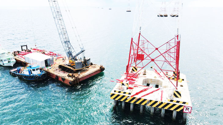 – Móng trụ trên biển được làm từ 50-68 cọc bê tông dự ứng lực với đường kính D800mm.